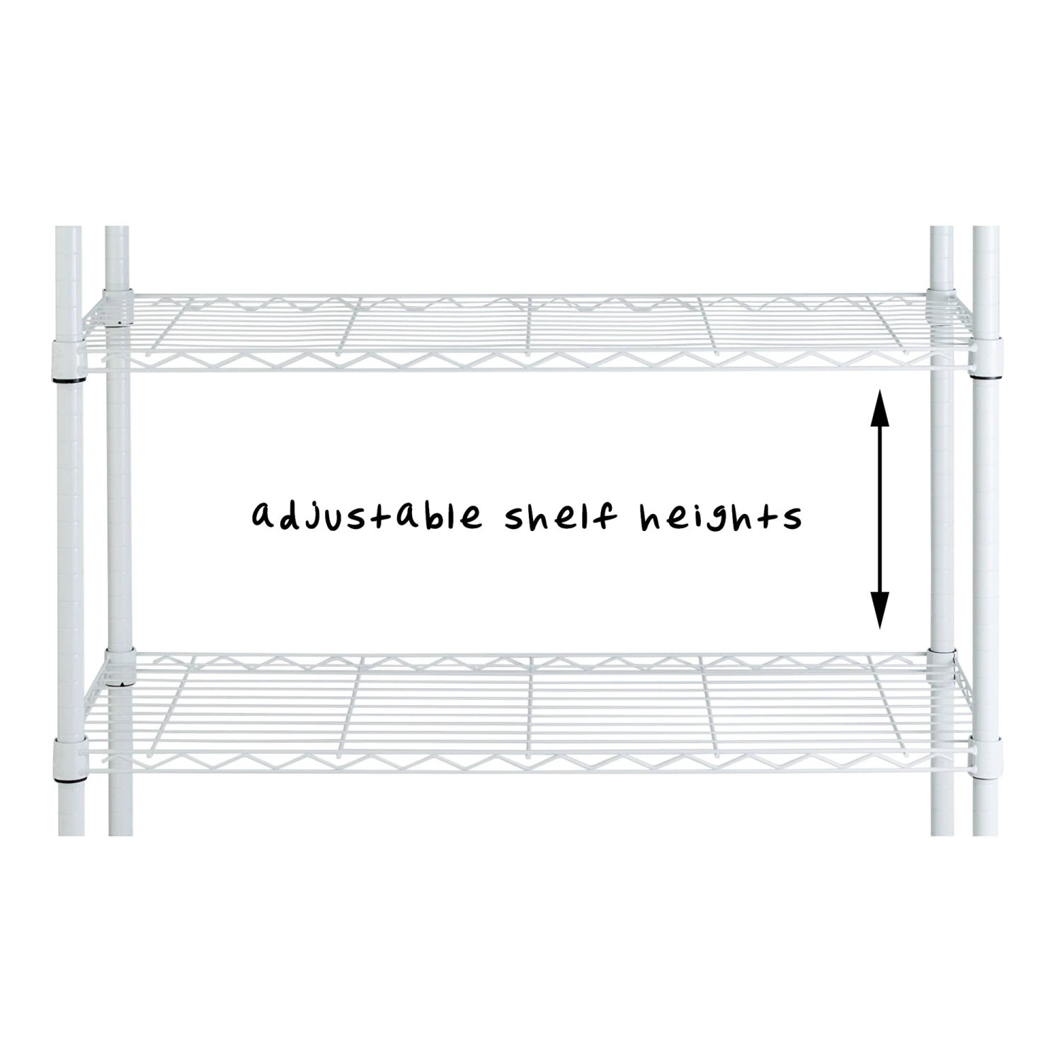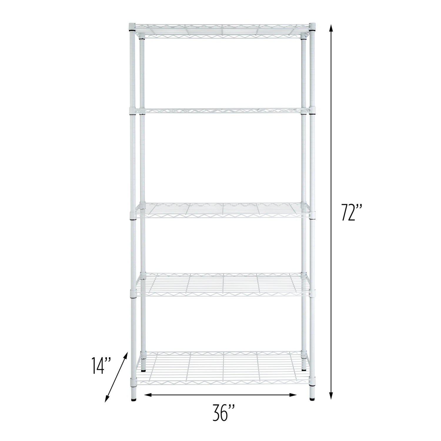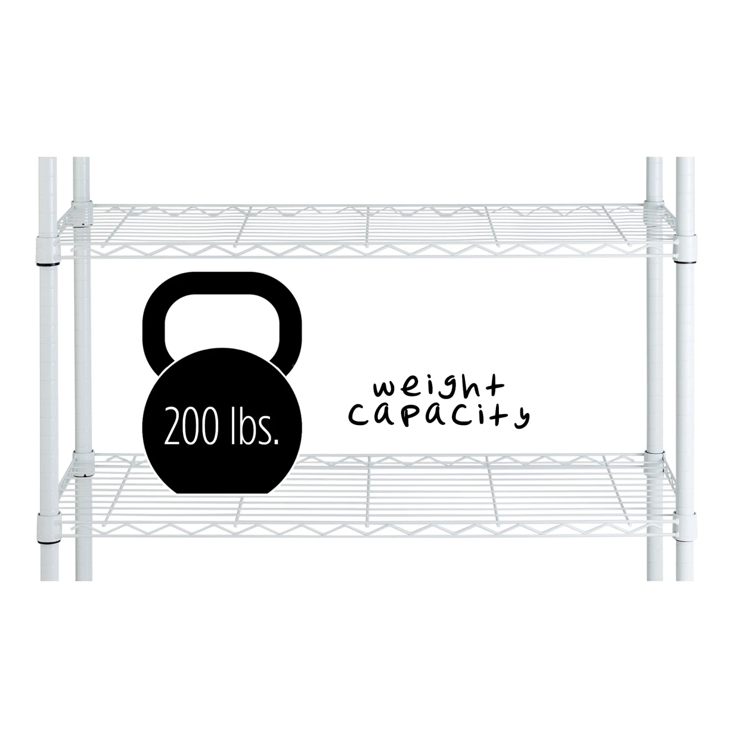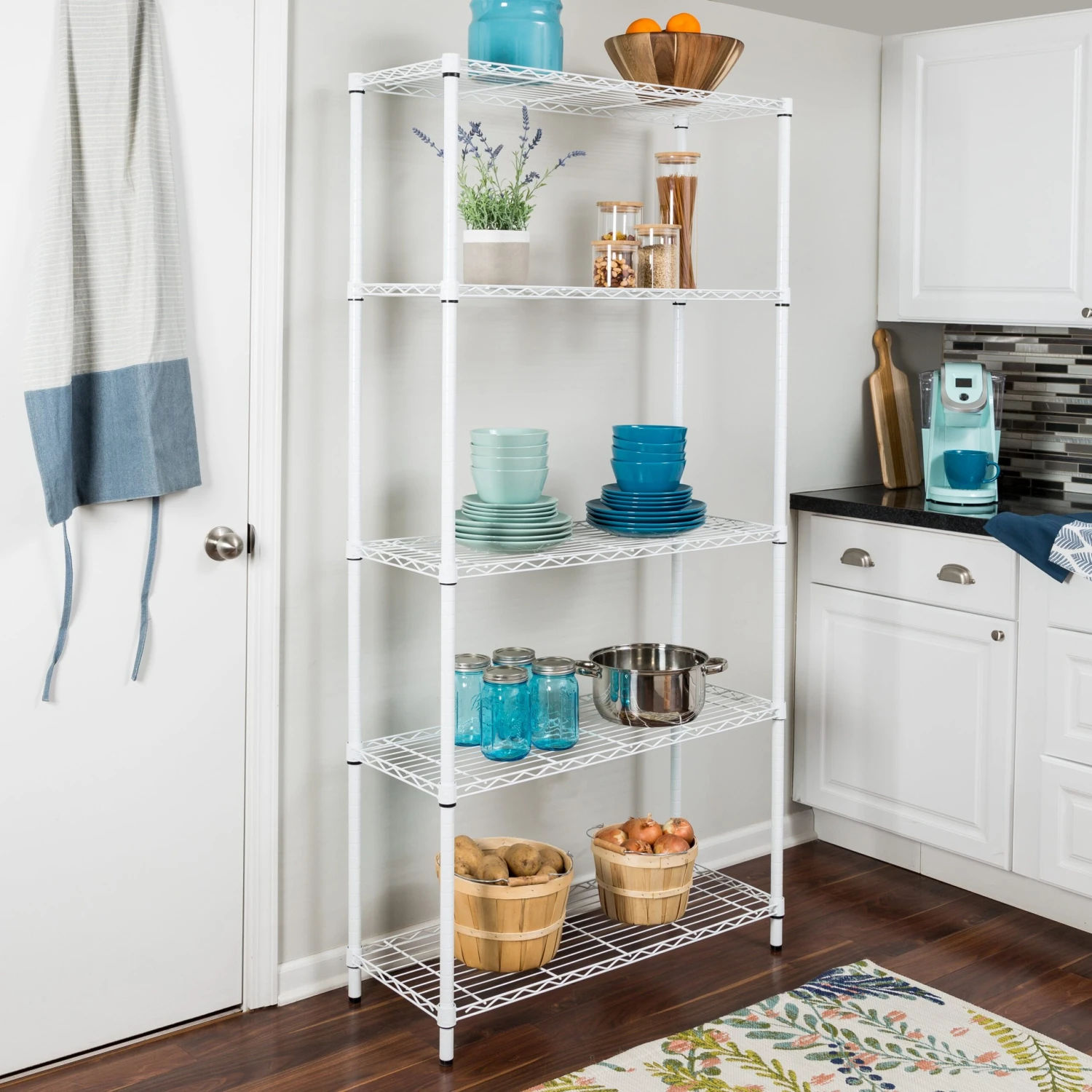 You love the versatility of shelving, if your shelving is versatile, that is. Well, it most certainly is with the heavy-duty 5-Tier Shelving Unit in White. Maximize storage in any room of the house with this durable DIY storage shelf that can hold up to 200 pounds per shelf. Adjustable shelving heights is convenient for when oddly-sized items arrive, like the large aqua deer statue that he just “had to have” from his last guys’ trip, or when shelving needs change. Commercial-grade certification makes this the perfect kitchen, garage or closet shelving unit. Your shelving needs to keep up with you – we make sure it does.