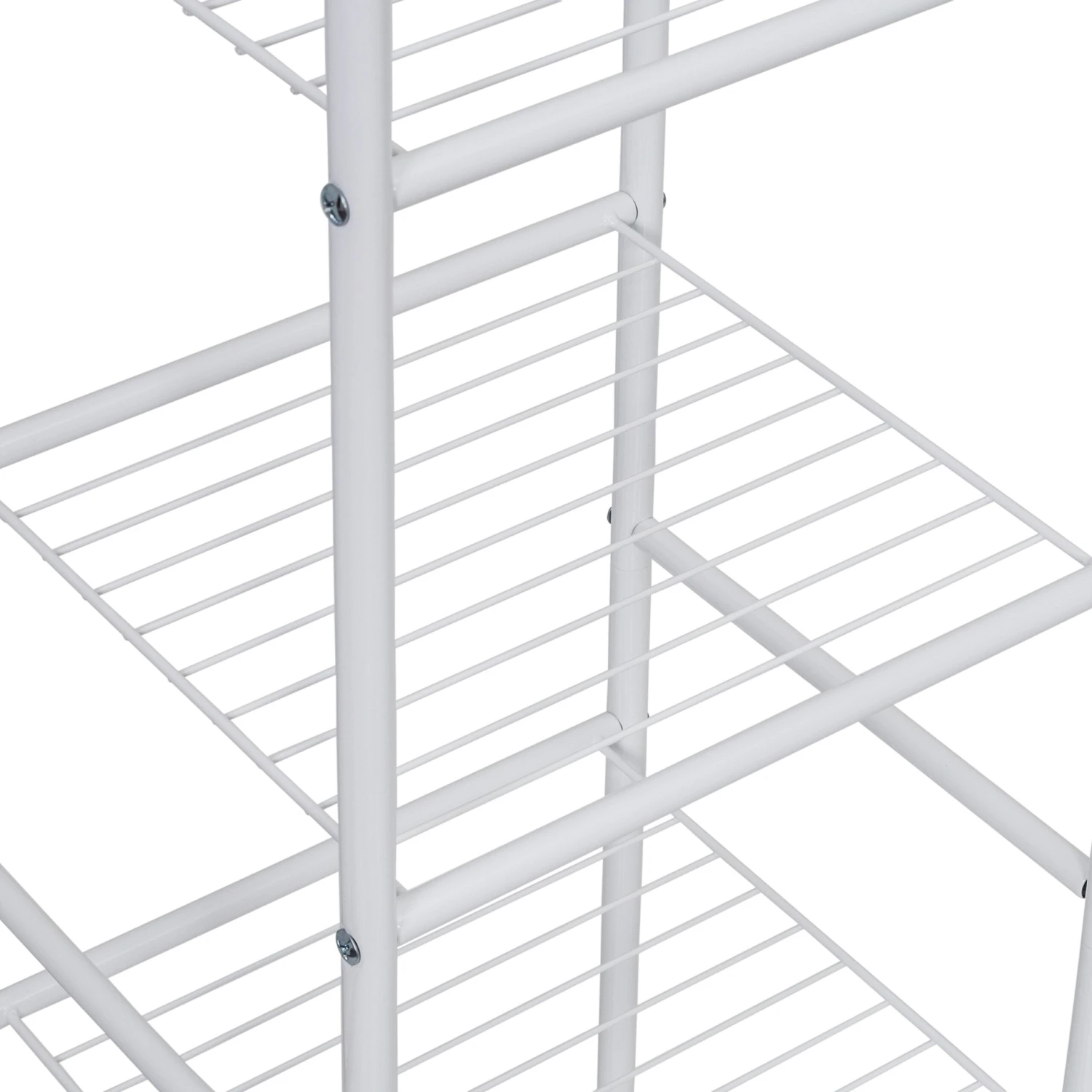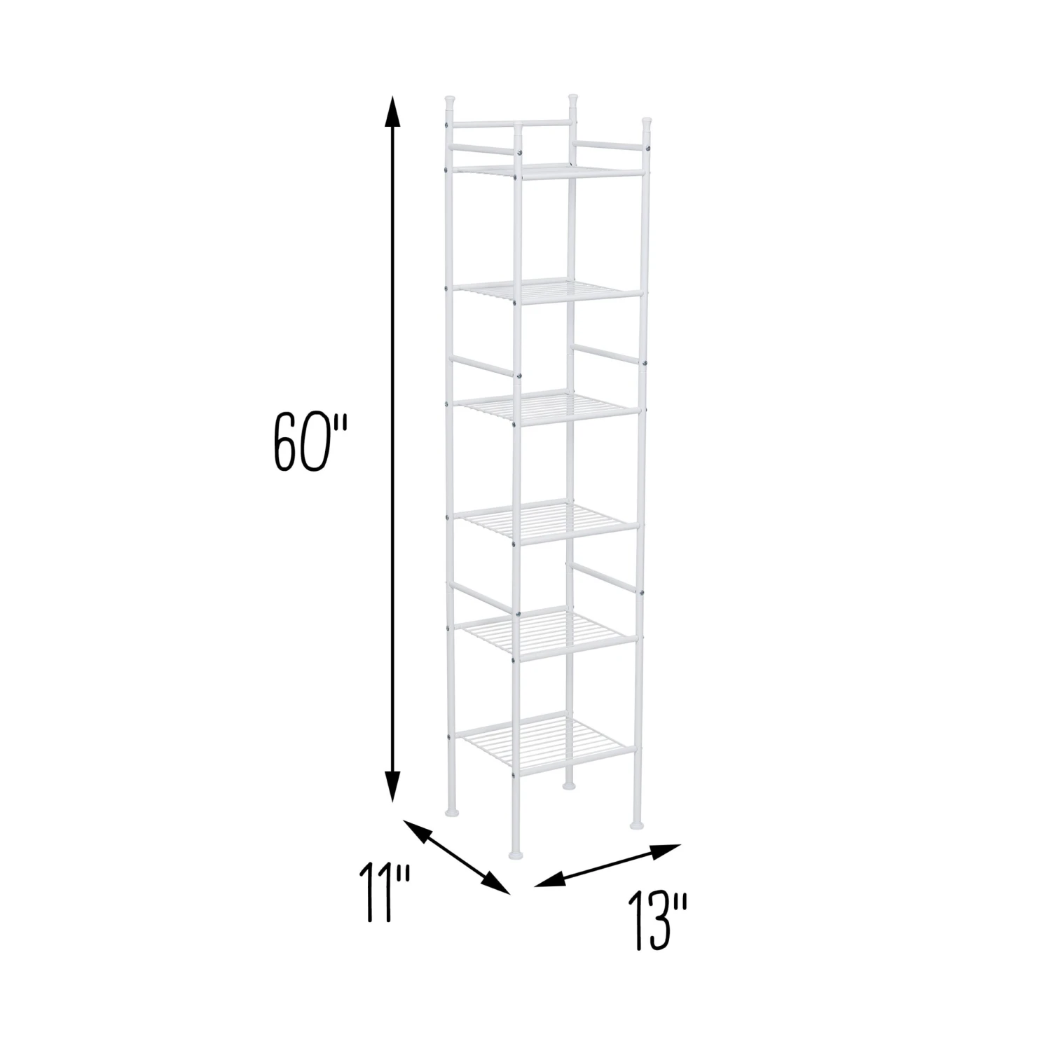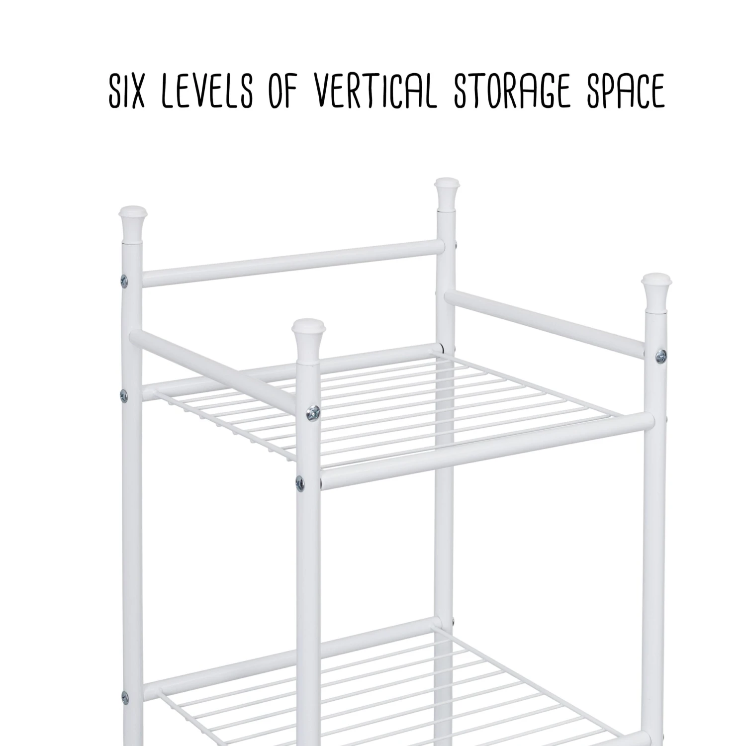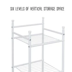 When you’re evaluating the storage capabilities of a room, don’t overlook the corners. That’s a prime spot to put this 6-tier metal shelving unit, giving you vertical storage space where you previously had none. The white steel frame resists rust, so it’s perfect for the bathroom, but also works anywhere you need to store or display some extra items. Fill some bins with extra towels, arrange a collection of soaps on top, or use it in the bedroom for the books you want to keep close at hand. Rubber-tipped feet protect floors from scratches and keep the shelf in place.