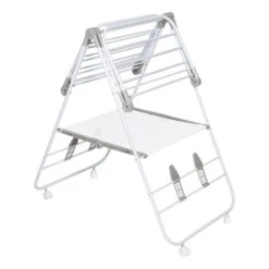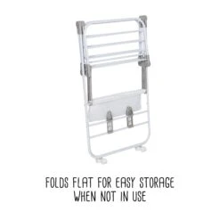 The only thing better than a large and versatile drying rack for clothes is one with wheels. A pair of wheels takes the portability of this wing drying rack soaring to new heights with their easy glide function that makes wheeling clothes from point A to B a breeze. Don’t worry; it still includes all the great features of the original Wing drying Rack with 42 linear feet of drying space that can hold 18 to 20 garments. The patented design also features smooth fold hinges that allow the wings to fold out into multiple positions for maximum drying space. It also boasts shoe racks that will keep your kicks in shape as they dry and a mesh shelf for those delicate pieces that need to be laid flat to dry. Once everything is ready to be folded, the A frame folds flat to 3” for easy storage.