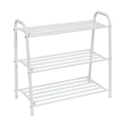 Store shoes stylishly and simply with this matte white metal shoe rack. Its three tiers will make a tidy home for the sneakers, sandals, and boots that make your home run. When that footwear finds a mud patch or tramps through an epic work of sidewalk chalk art, it’s simple to wipe down and clean the smooth matte finish that coats the rack’s steel frame. And speaking of that subtle finish and A-frame, it’s not bad to look at either. Leave it at a doorway and you’ll erase a messy pile of shoes while lending an entryway a light touch of countryside chic.