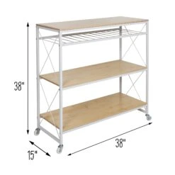This versatile jack-of-all-trades kitchen island is perfect for keeping your kitchen organized. Store kitchen tools, small appliances, accessories and more. And whether entertaining or prepping, the easy-gliding wheels allow you to move the island around to its most ideal location and lock it in place when you get it there. A wide wide thin shelf is ideal for storing flat kitchen accessories like cutting boards, baking sheets and serving trays, and even bottles of wine. The island’s strong metal frame makes it the perfect kitchen companion to stand up to everyday use.