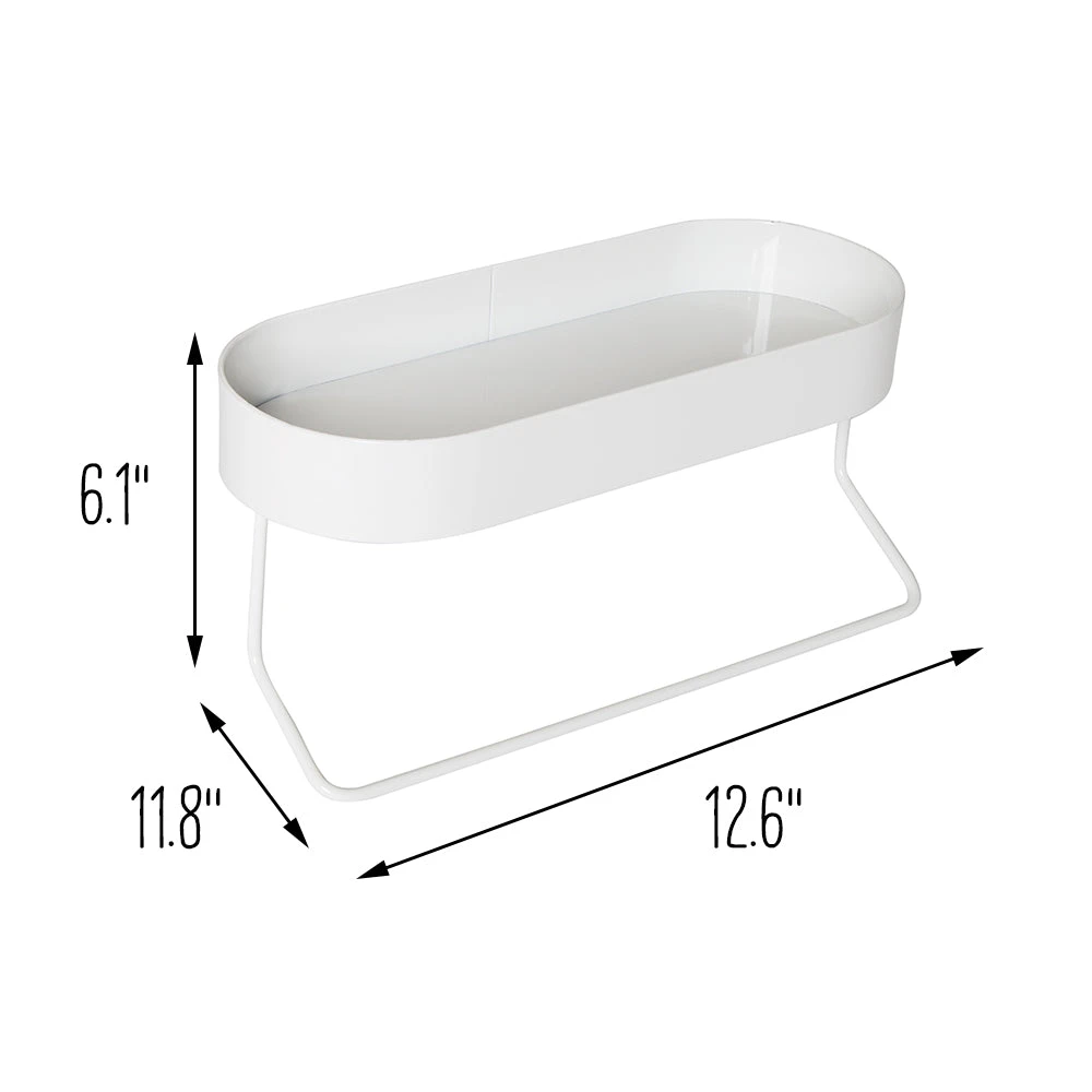 The soft oval shape and clean white finish allow this mountable bathroom shelf to blend into any style of home. Hang it by the sink and the bottom towel bar will keep hand towels within reach. Or mount it above your toilet and use the top shelf to stack a few extra toilet paper rolls, organize toiletries, or jazz up the space with some small art or a succulent. The good news is that no matter what you place on the top shelf, you’ll be treated to peace of mind. The included mounting hardware not only keeps this shelf securely attached to the wall, but the shelf lip keeps all items corralled—minimizing the risk of them taking an accidental plunge onto the floor (or worse, the toilet!).