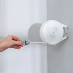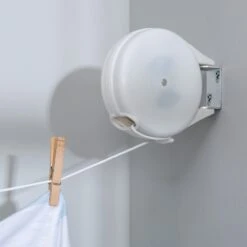 The perfect solution for those who want the freshness of line dried clothes and linens without the permanent, in-yard solution. This space-saving, retractable clothesline offers an eye-popping 40ft. of line to help you efficiently hang an entire load of laundry. The easy-to-clean, vinyl line quickly reels up when not in use. Designed for wall mounting, the sturdy bracket is made from rust-resistant steel – important when being used outdoors or in a high humidity environment such as a bathroom. Save on energy costs while protecting the environment and increasing the life of your clothes with this versatile clothesline.