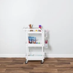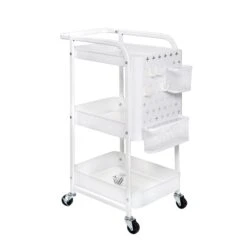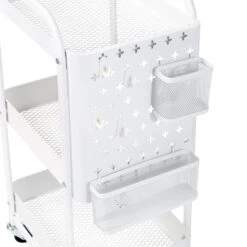 Up your organization game with this multifunctional 3-Tier Cart featuring Side Pegboard Storage. Ideal for crafting, art supplies, beauty routines and hair styling tools, this cart comes with a detachable pegboard, two metal accessory cups, and four plastic hooks for ultimate convenience. Compact, bright and easy, this cart is built to handle everyday use and bring a touch of practicality to any space.