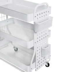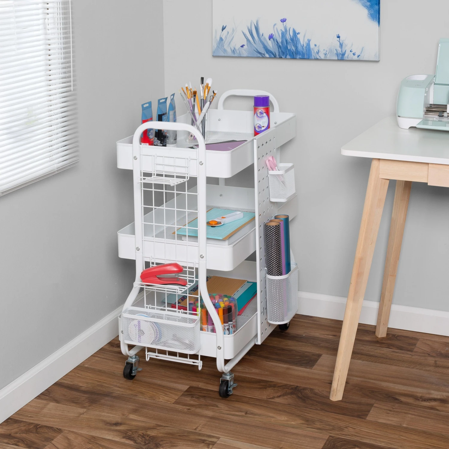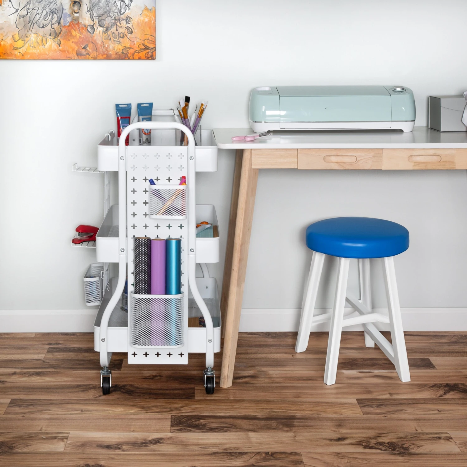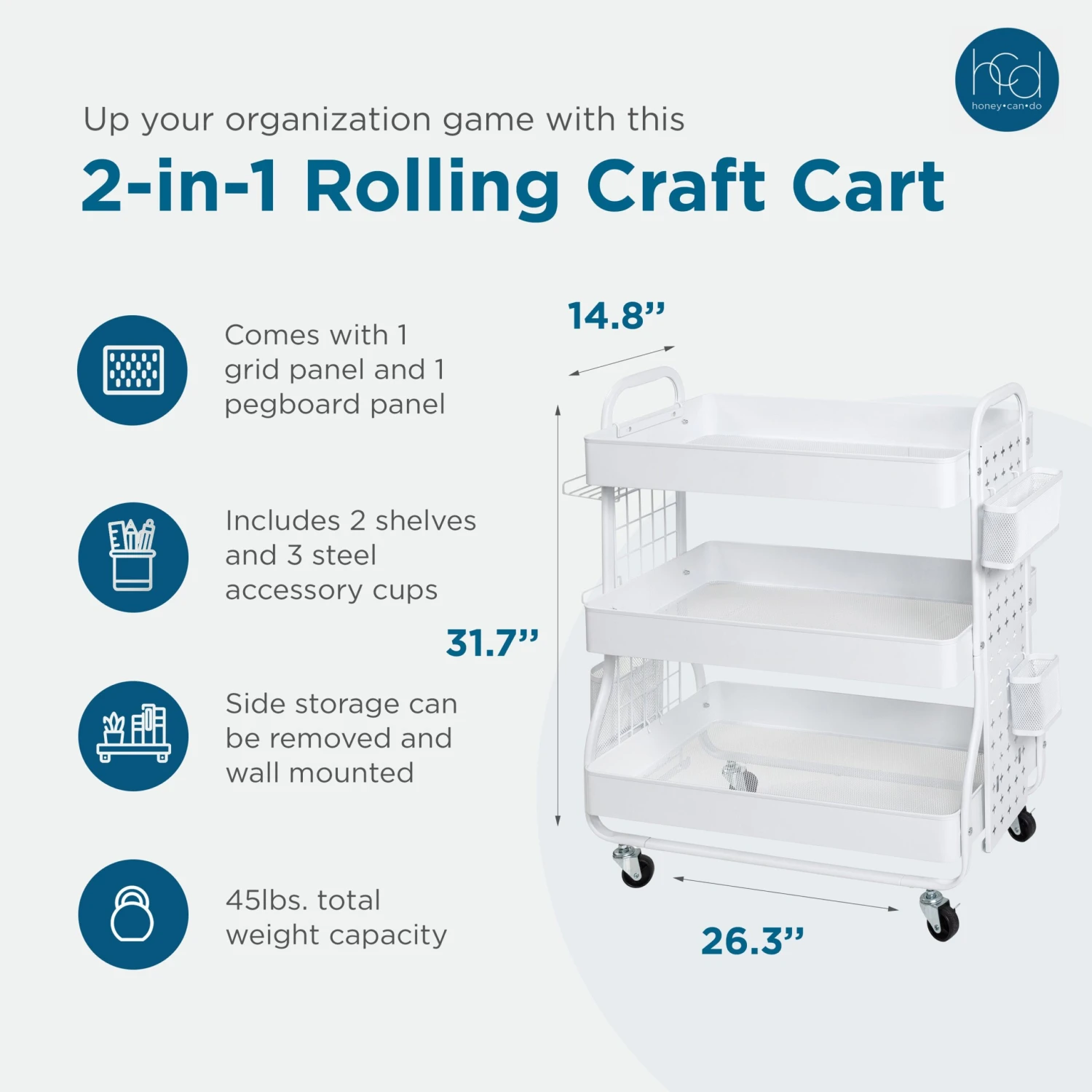 Discover the ultimate crafting companion with the 2-in-1 Craft Cart. This versatile cart not only offers three spacious tiers for all your supplies but also features two removable side panels that can be wall-mounted to create a static station. Whether you use it as a mobile cart or mount the panels on the wall with the included hardware, this cart is perfect for maximizing space in any room. With its sleek design and practical features, it’s ideal for organizing everything from craft supplies to kitchen essentials, providing a seamless blend of function and style.