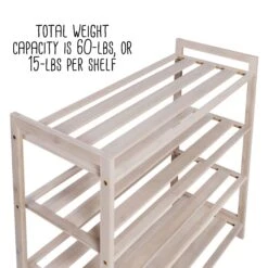 - Total weight capacity is 60-lbs, or 15-lbs per shelf
