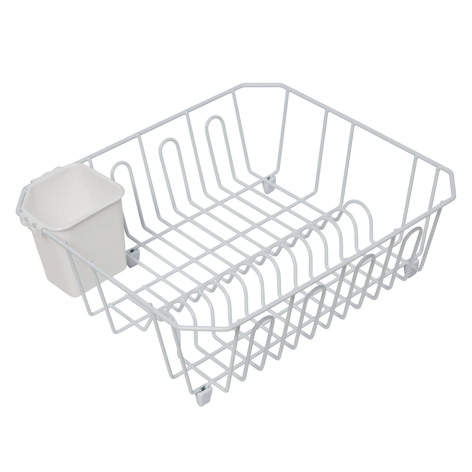With this white wire dish drying rack with plastic utensil holder, wash ‘em up and easily arrange plates, glasses, mugs, silverware and small kitchen tools to dry quickly and evenly. And when they dry, have the kids put them away with you so you can stay in your happy place where chore time meets quality time.