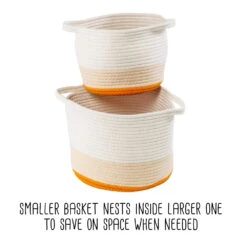 Sometimes, shelves and bookcases do too good of a job. They offer such amazing storage that we overdo it. We fill them past capacity, cramming extra toys, stuffing surplus craft supplies, or piling on too many books. An easy way to lighten such busy visual spillage is this set of cotton rope storage baskets. Toss in those extra blocks, markers, or board books, and you’ve quickly straightened out what had been a messy sight. In its place, view the clean natural texture of woven cotton rope, smartly finished on the bottom coils with a fun ombré effect.